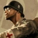 The Soldier hears explosion and looks behind himself, Sniper hurt. He then looks ahead and sees the Nazi sniper aiming at him. Then, like a War-Hero, the runs towards the Nazis, fires his Rocket Launcher under his feet, Rocket-Jumping towards the Nazi, and fires a rocket at Hissman. Hissman is caught off-guard and is hit directly in the face by the Crazy-American’s rocket, blowing him to pieces.