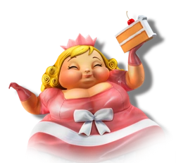 Fat Princess is the bubbly heir to the throne of the Kingdom of Titania whose love of her people is only surpassed by her love for cake. Often she would travel to other kingdoms to raid them of their cake supply and is often accompanied by her loyal soldiers.