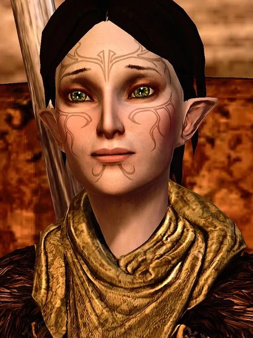 Merrill is the former apprentice of Marethari, the keeper of the Sabrae clan of Dalish elves. After her friends Mahariel and Tamlen are corrupted by a tainted magical mirror, Merrill takes the mirror to study herself. She brings it with her to the Free Marches when the clan leaves Ferelden, where she eventually utilizes blood magic in an attempt to cleanse the mirror. Due to the tabboo around blood magic, Merrill is exiled from the clan and forced to take shelter with Hawke, who she joins as a companion.