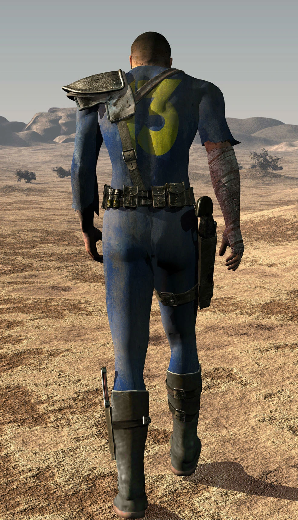 The wasteland was sweltering hot. It made the Vault Dweller glad he wasn’t wearing power armor. Tycho and Dogmeat were close by, on the lookout for ghouls and Super Mutants, which had seemed to become dumber and more hostile the further east the three traveled. The number made the Vault Dweller solemn for a moment- it had been a few years since he had been exiled from Vault 13. Ian had fallen fighting a group of overzealous bigots named the Brotherhood of Steel, and Katja was killed by a Super Mutant Behemoth when they first entered the Capital Wasteland. It was no wonder they had become so defensive- the Vault Dweller looked out for his family, and with only two more left he couldn’t stand to lose another. Across the distance, Tycho spotted another man wearing a Vault Suit, traveling in a group of three. The Dweller sent the Desert Ranger to take a position on top of some rocks in case they needed to flank the group if they were hostile. When the Ranger was in place, he and the mangy dog approached the trio. The Lone Wanderer looked up, relieved to see another person from a Vault. His robotic sidekick, Sergeant RL-3, wanted to kill him and his hideous looking dog, but the Wanderer was never one to dismiss a possible ally. “Afternoon!” he shouted across the gap. “I’m from Vault 101. What’s your number?” “13!” The Vault Dweller shouted back, never breaking his stride.
