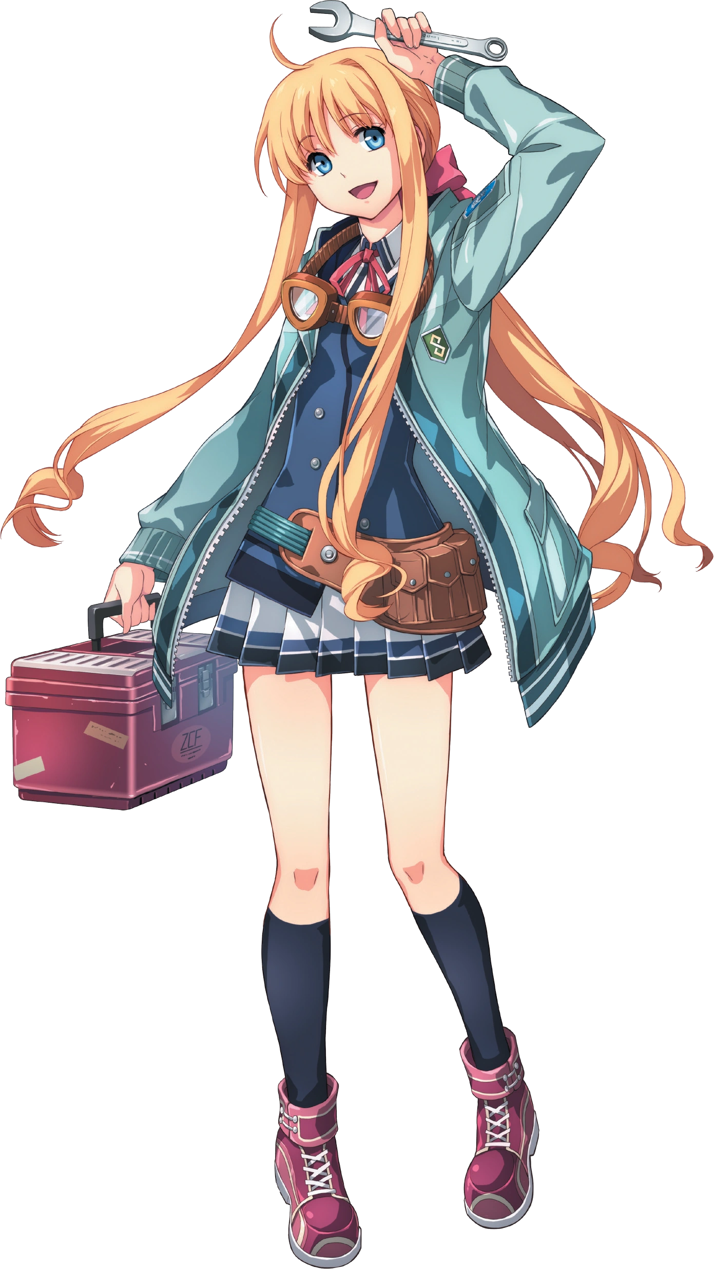 She would later enroll in the Thors Military Academy Branch Campus at the age of 16, both to help her friend Olivert Reise Arnor - one of the princes of Erebonia - investigate strange happenings as well as to learn under Professor G. Schmidt, her grandfather's fellow scientist and semi-rival. Her technological prowess, and the upgrades to the Orbal Gear she made as her personal project, prove vital in foiling the plans of Giliath Osborne, the Ouroboros Society, and several others that planned to use Erebonia as a staging ground to end the world. She continues her studies, maintaining her friendship with Renne as the latter heads to Calvard.