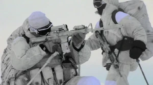 The Green Berets soldiers standing guard suddenly look at each other in apprehension. The commander signals to his subordinates, and they take cover. He communicates to the rest of the team to do likewise. They turn of the safety on their weapons and shift their grips. The helicopter flies over the ship, and pauses to hover over the deck. Suddenly, 7 men clad in black tactical gear rappel out of the chopper onto the icy deck of the ship. They quickly take cover behind deck hatches, lifeboats, and equipment left on the deck. They unclip themselves from their ropes and raise their weapons, scanning the ship’s bridge, above them. Suddenly, gunfire erupts from the window of the bridge, catching the Canadians by surprise. They return fire with their C8 assault rifles. Suddenly, a JTF2 operator drops lifeless to the deck as a Green Beret shooter hits his mark with the MKR sniper rifle.