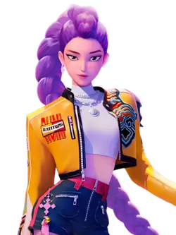 The rapper and maknae (youngest) of the group. As a Korean-American from Burbank, California, Zoey never felt entirely at home with either side of her heritage. This led to he developing a sense of isolation and a need to belong, turning her into something of a people pleaser. Fortunately, she found that place in Huntrix. As the maknae, Zoey is excitable, bubbly, and even a little naive.