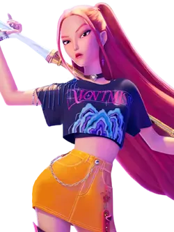The main dancer of Huntrix, Mira came from a wealthy background, but was considered the black sheep of the family due to her rebellious nature. Although worried that she would never find a true family due to her temper and blunt personality, she eventually found one in Huntrix. Styling herself as a tomboy, Rumi has shown appreciation for tattoos and is by far the most aggressive of the trio.