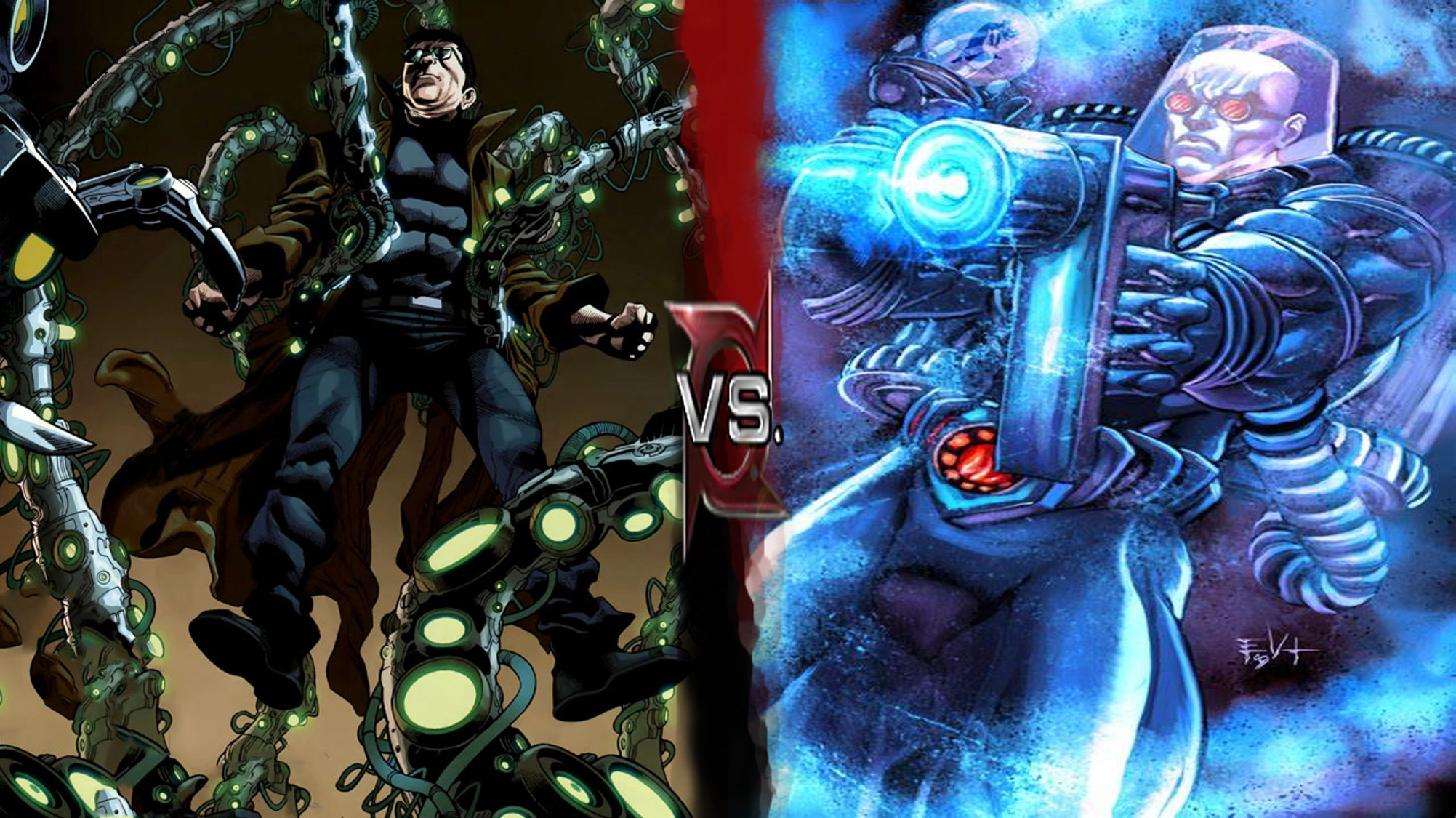 Both are very experienced. Both primarily stick to fighting one hero and his associates, as well as other villains of the aforementioned hero. However, both have occasionally fought other heroes and villains. And since we are using pre-"end of the world" Doctor Octopus and present Mister Freeze, Doctor Octopus falls a bit behind Freeze for his lack of experience in universal or grand-scale events - Freeze was active in forever evil, dark knights metal, year of villain and participated in the last stand against the dark multiverse during death metal, aiding the heroes and freezing large hordes of Groblins with his gun.