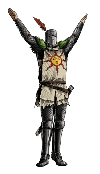 An unwavering and loyal Warrior of Sunlight, Solaire of Astora is a noble knight determined to find his very own sun. To this end, he willfully became Undead and set out on his quest, where he befriended the Chosen Undead at the Undead Parish, striking up a friendship with a fellow warrior and aiding them in several difficult battles. Solaire's journey takes him across much of the land, where he repeatedly runs into the Chosen Undead and fights alongside them, developing a deep respect for them as a comrade.