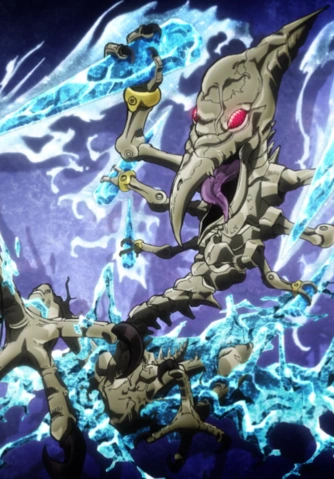 Fusion: Dio possesses the ability to graft the body parts of different beings together, using this to create half-man half-beast pets. Dio later used this ability to graft his head onto Jonathan's body.