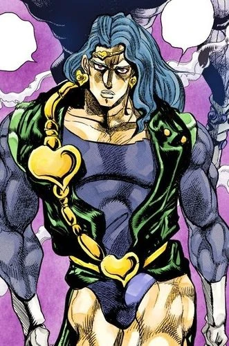 Vanilla Ice is an antagonist featured in part 3.Hee is the last Vampire created by DIO and one of the penultimate Stand Users the Joestar group faces upon infiltrating DIO's HQ. After the group is split up, he is sent to take out the team consisting of Avdol, Jean Pierre Polnareff, and Iggy.With his ridiculously powerful stand he managed to kill both Avdol and Iggy while severely wounding Polnareff before getting defeated by Polnareff. Stand:Cream