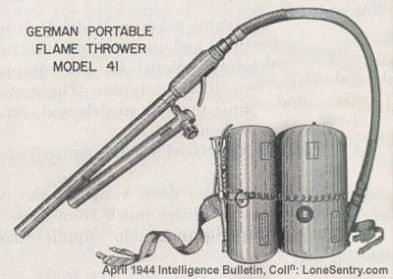 Montgomery fires a bust from his Sten, hitting the fuel tank of the Flammenwerfer and causing the weapon to explode, killing the user.