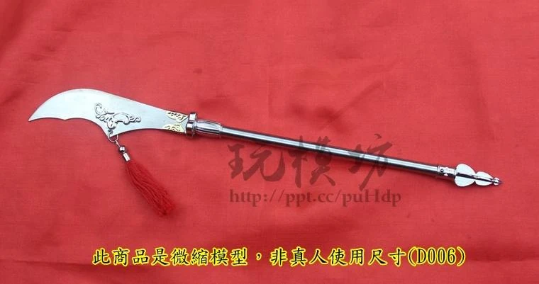 The Qūdāo was a Chinese polearm that evolved from the earlier Guandao glaive, which was also the basis of the Japanese Naginata. With a heavy blade but a relatively sharp point, the Qūdāo was, like the Shǒudāo, meant to deal heavy blows against enemies and was meant more for slashing than thrusting, although it definitely was capable of thrusting if needed. It was mainly used against cavalry. It had a 50 cm long, broad and powerful blade mounted on a long shaft, making the overall weapon's length around 200cm.