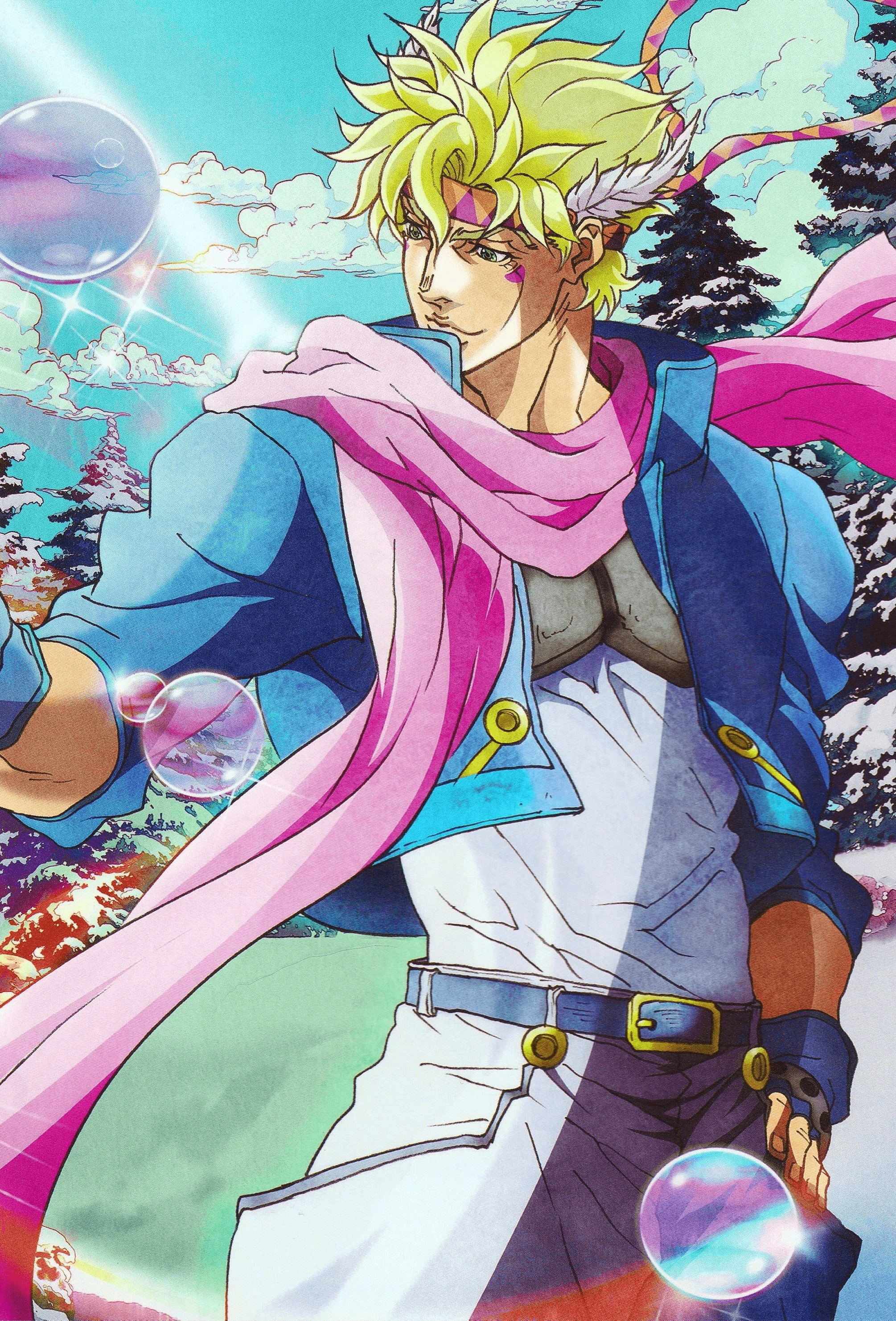 The grandson of Will A. Zeppeli, Caesar Zeppeli was abandoned by his father, Mario, when he was just a child. A bitter Caesar grew into a feared criminal until he reencountered Mario by chance. Intending to kill him, Caesar followed Mario to a passageway where the Pillar Men, ancient Mesoamerican superhumans, were lying dormant. Caesar activated a trap from the Pillar Men and was barely saved by his father who sacrificed himself. Honoring Mario's dying request, Caesar sought out Lisa Lisa to learn to wield Ripple, the energy of the Sun. Meeting Joseph Joestar years later, Caesar initially disliked Joseph, but Joseph's courage earned Caesar's respect and friendship. Hoping to avenge his father, Caesar recklessly attacked the Pillar Men's hideout. Caesar battled and nearly defeated one of them, but was fatally wounded. Caesar created a bubble with the last of his Ripple for Joseph to find. Caesar was then crushed to death by a piece of the roof.
