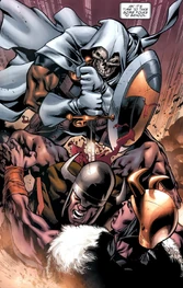 Master Marksman: After observing the abilities of Hawkeye, Bullseye, and the Punisher, Taskmaster is an expert with any kind of projectile weapon, even those that normally shouldn't be used as projectiles, like pens. He's quick and accurate enough with projectiles to tag Moon Knight, a bullet-dodger.