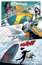 Superhuman Physicality: Thanks to the Nazi version of the Super Soldier Serum, Taskmaster has superhuman strength, speed, reflexes, and durability. He is strong enough to damage Iron Man with a throw of his shield or to crack asphalt by slamming someone's skull into it. Like any comic character worth his salt, Tony is capable of dodging bullets, but he takes it one step further by catching bullets out of the air and deflecting them with a chain. He has walked away from being hit by a speeding car, the explosion of a grenade, and hits from Spider-Man and Luke Cage. An attack from the Invisible Woman that punched through a foot of concrete was only powerful enough to knock him out.