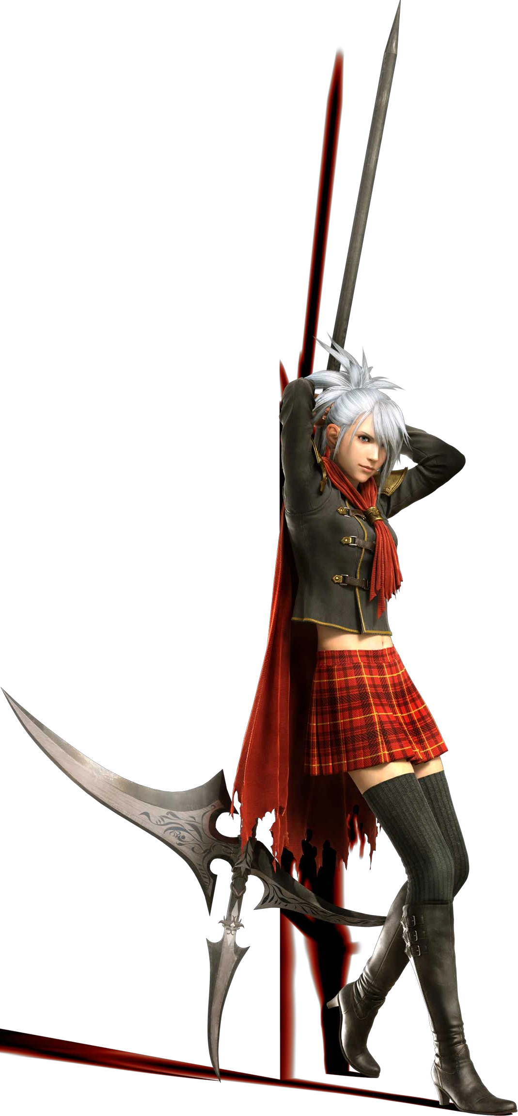 She roars as she slams the broken shards of her sword into Artorius’ face, repeating the motion until he lies still. She rises, breathing raggedly as she adjusts her glasses and fixes her skirt. Sanity returns to her eyes as she glances at her sword and the dead opponent in front of her.