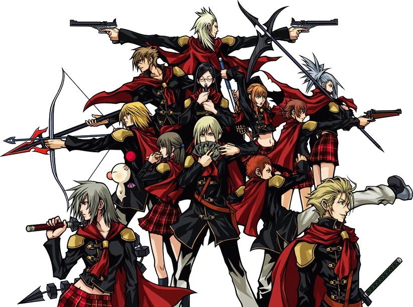 All the members of Class Zero are orphans, their parents killed at some point in the never-ending wars on Orience. They share an adoptive mother, Dr. Arecia al-Raisha, though they don't initially consider each other siblings. They formed the core of Arecia's experiment to manifest Agito and open Etro's Gate, each representing one of the sixteen qualities Arecia thought necessary; the other four were deemed unneeded, and Arecia cast two of them out entirely and retained the other two as assistants. As the adoptive children of an incognito goddess of surpassing power, they were all trained in combat from a young age. Arecia gave the crystal-state of Rubrum her backing, and the children were folded into their command structure as Class Zero.