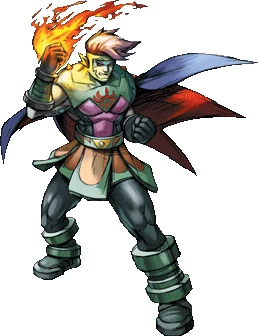 Saturos hails from Prox, the Northernmost settlement in Weyard, and as such is a Proxian. Proxians are a very humanoid race with mildly reptilian features, such as scales and spikes, and are naturally proficient with the Mars, or fire, element. Saturos is considered Prox's strongest warrior, and is generally sent on missions of high importance.