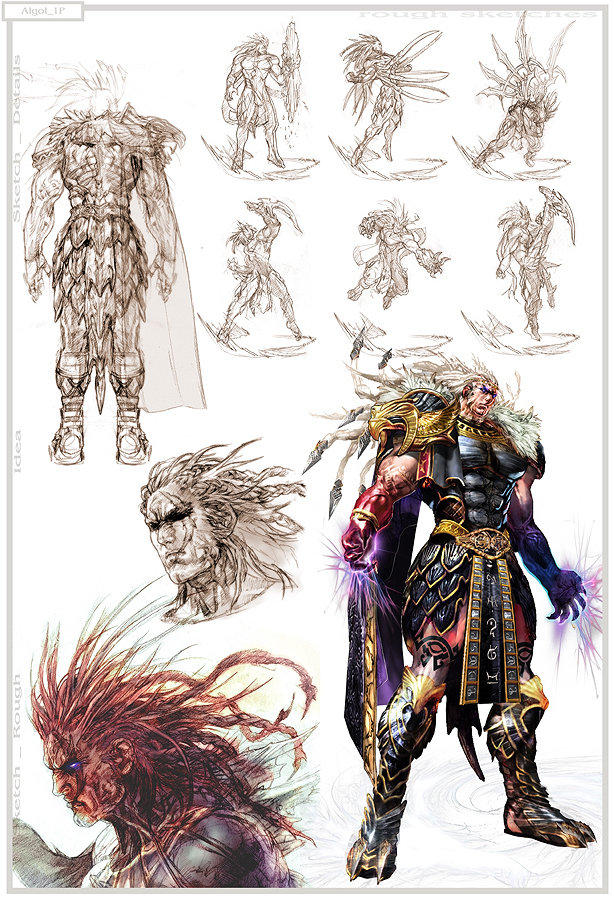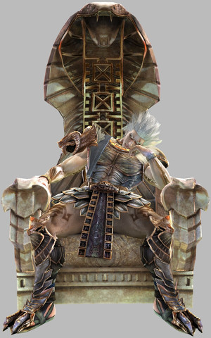 ![]() Algol, later known as the Hero King, was the only man to wield Soul Edge and not lose his sanity to the sword's demonic soul, as well as the creator of the Holy Sword, Soul Calibur. His son, Arcutus, grew jealous of his power and attempted to steal Soul Edge. The two battled for control of the sword, and Algol slew his son. He was overcome with grief due to his son's death, so he created the legendary sword Soul Calibur out of the shards of Soul Edge to act as a counter to the evil sword. However, in order to create a sword to oppose one with a soul, another soul was needed. Algol used his own soul for the ritual. However, his grief and hatred for Soul Edge corrupted the new blade, making it was similar in nature to Soul Edge. A tribe purified the sword, sealing the hero king away and making it a true counterbalance to Soul Edge. Algol, however, was still not without power. He shaped himself a new body, copies of Soul Edge and Soul Calibur, and a tower called The Tower of Remembrance to draw warriors to him in hopes he would find the swords and resurrect himself. He discovered that he currently exists in a plane of reality called Astral Chaos, a churning void created by the conflict between the two swords. This reality connected all points of space and all points of time, and he refined his goals. Now, he seeks to rule over Astral Chaos and then escape and conquer the world as a god-king.