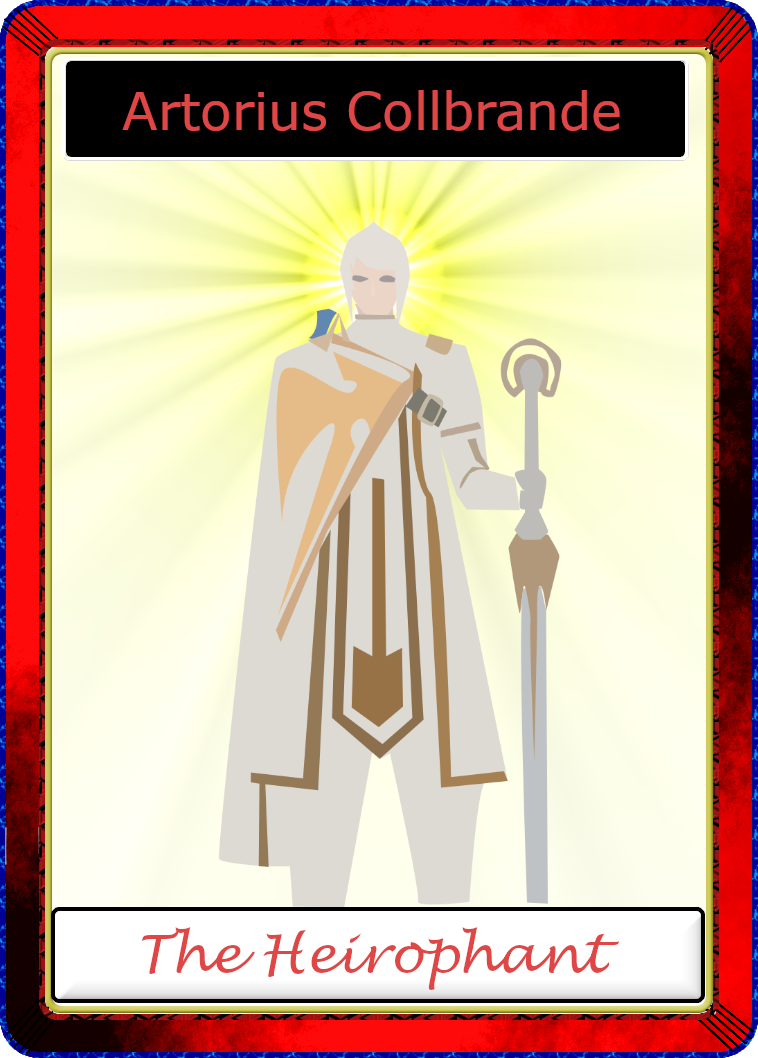 ![]() Artorius Collbrande is the head exorcist of the Abbey and the main antagonist in Tales of Berseria. Ten years before the story began, Artorius stumbled upon the village of Aball, alone and depressed. There, he met Celica Crowe, with whom he fell in love. He took the name Arthur, and settled down with his wife and her younger siblings. He would later lose Celica and their unborn child during a Daemon attack, the two becoming the malakhim later known as Seras and Phi. As losing your wife and unborn child is wont to do, this puts Artorius into a genocidal depression, focused on preventing all of humanity from experiencing any emotions at all. To this end, he sacrifices the entire village of Aball, killing his brother-in-law, Laphicet, to turn him into a vessel for Innominat, a previously unknown god. He also turns all the villagers into daemons, and his sister-in-law, Velvet Crowe, into a Therion, a special type of daemon that feeds on despair. Velvet is then thrown into a maximum-security prison. While she struggles to survive, Artorius uses Innominat's power to expand the ranks of the Exorcists, rapidly becoming a hero to the people by driving back the Demons. He eventually takes full political power, usurping the throne as the world's new battle-pope. While he is successfully able to enact his plans, he is prevented from expanding Magic Communism outside of his capital due to Velvet's interference. He then separates Innominat from the planet, creating a massive fortress in space to set the final showdown with Velvet. He loses, and dies lamenting he couldn't save everyone.