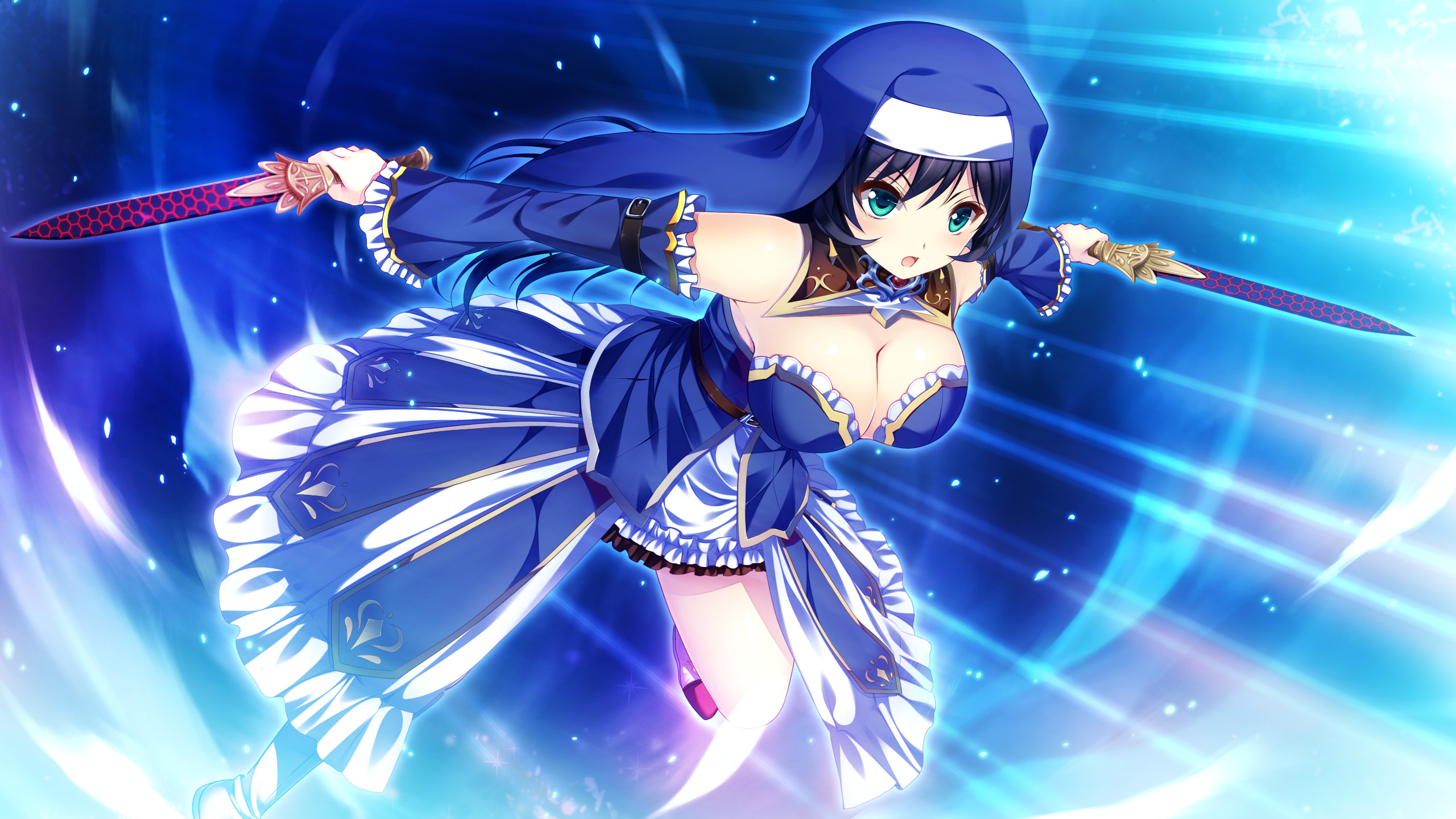 Elsewhere, Yukie parries yet another series of strikes from Fiona, grimacing at the effort. She immediately pivots her sword to block a razor-sharp pillar of ice that threatened to gouge her side, and lets go of the handle to punch Fiona back, the nun vulnerable from her leap to strike overhead. Fiona flips in midair, launching horizontally off of one of her ice platforms aiming a slash towards Yukie’s neck with one hand while using her other to call down an icicle from above.