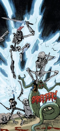 Nico gulps back his fear, unintentionally radiating in a deathly feeling of terror. Psycho Mantis recoils on instinct, and his illusion temporarily slips to reveal the skeletons silently awaiting Nico's command. The demigod grits his teeth, and the illusion shatters completely. As he prepares to give the final order, the ground shakes beneath them with a sickening thud.