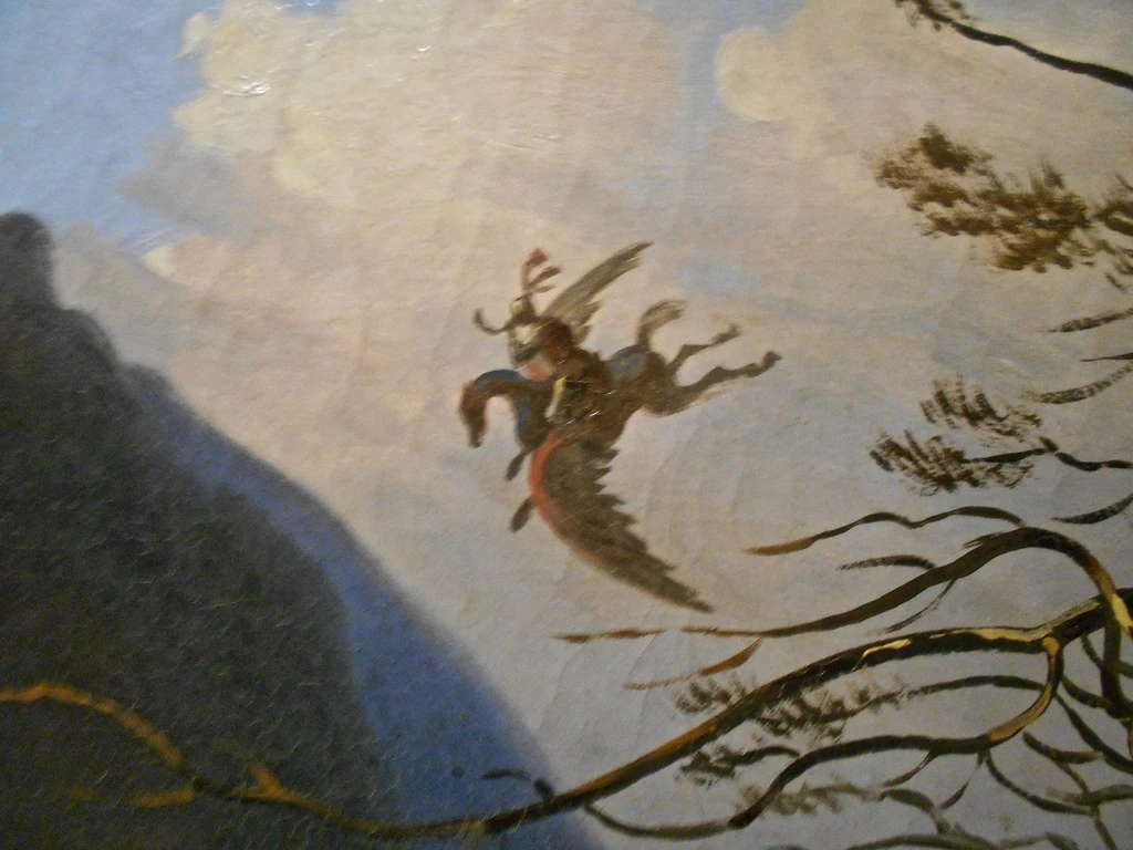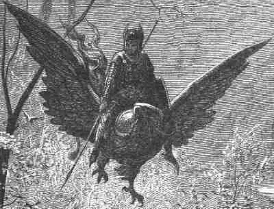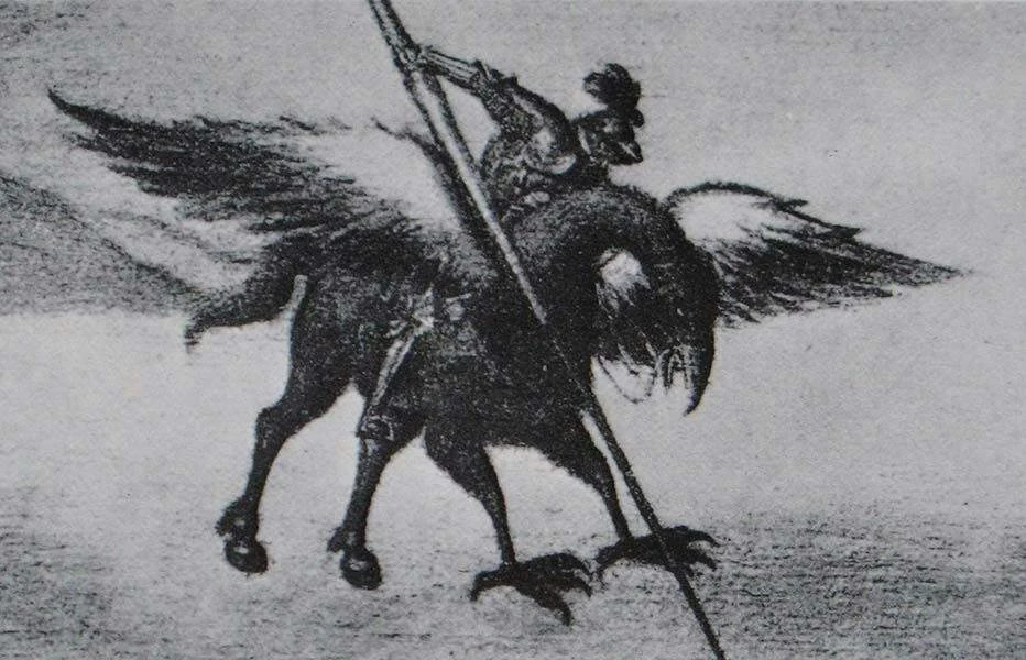 | “ | Backed by Astolfo, and ascending slow, the hippogriff through yielding aether flew; and next the rider stirred the courser so, that in a thought he vanished out of view.