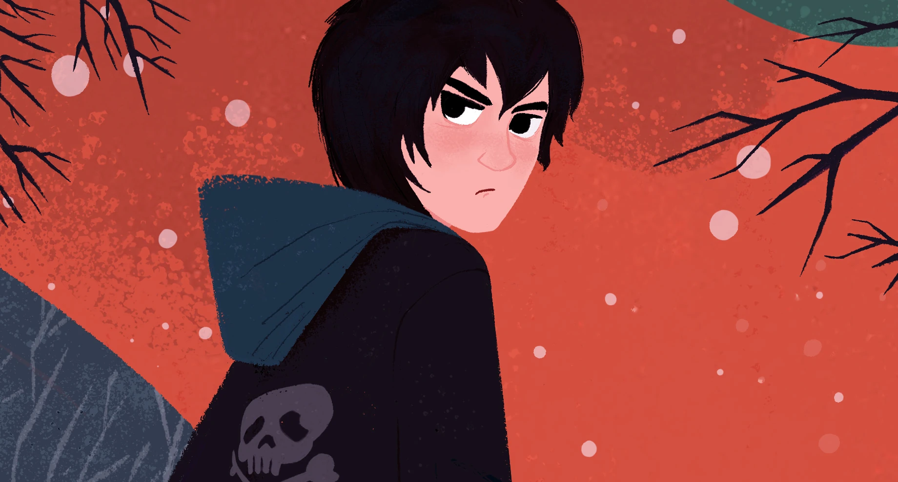 Before anyone can answer, the doorbell rings again. Seeing the surprise on their faces, Cole stands up and approaches the door. He opens it, to see a young man in a maroon shirt and yellow domino mask.