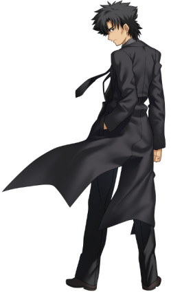 Kiritsugu Emiya was born on a small island off Japan, to a mage working on dangerous magecraft related to vampirism. After the island was destroyed in one of his father's experiments, Emiya was forced to kill his own father before escaping the island. Emiya became determine to prevent such tragedies from occuring, and trained in both magecraft and the use of weaponry, in order to become a "hero of justice" and fight mages such as his father, who endangered the lives of innocents such as those on his home island. Kiritsugu went on to destroy a jumbo jet after the passengers had been zombified, sacrificing a woman who had been a mentor of his during his younger years. Emiya later became dark and cynical, realizing that in order to save lives, one must end lives. Emiya was eventually killed in a "Holy Grail War" a ritual performed by the mage's association where seven mages and the spirits of seven summoned legendary heroes fight over an artifact reffered to as the "Holy Grail", capable of granting any wish. Shortly before his death, Kiritsugu adopts a young boy whose parents were killed in an incedent during the "Holy Grail War", naming his Shirou. Shirou appears as the main character in the sequel to Fate/Zero, Fate/Stay Night