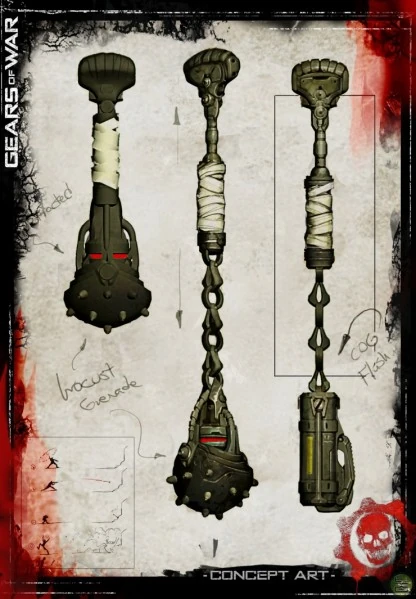 The Locust says, "you'll make a very tasty meal.", and pulls his body to the shack to cook him later. However, he sees another Chieftain armed with a plasma cannon. The Locust says "Uh Oh!", before getting blown up. The Chieftain exits the alley, but he almost gets shot by a locust with his torque bow. Another Chieftain sneaks up on the locust and crushes him to death with his hammer.