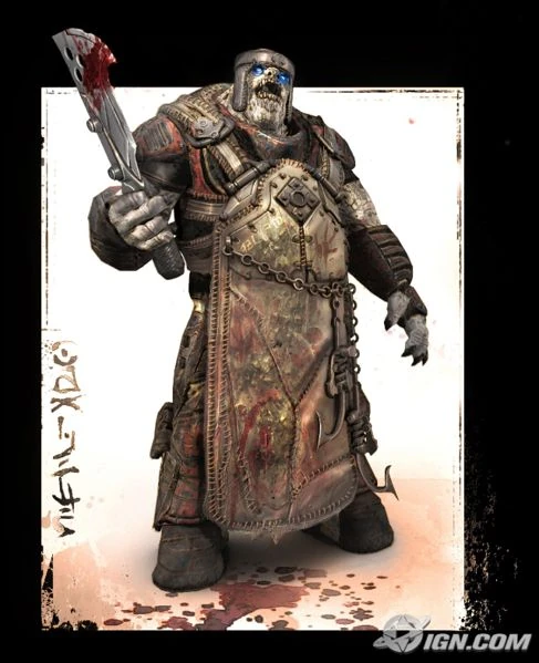 The two teams' leaders tell their men to split up, and they all scramble. A Chieftain enters a narrow alley, looking for any signs of a locust. Suddenly, he hears a raspy voice say "Hunger!", and he is ambushed by a Locust butcher. The Locust pulls out his butcher knife, and swings, but misses. The Chieftain pulls out his Jiralhanae Combat Knife and stabs the Locust in his abdomen. The Locust retaliates by cutting the Chieftain's hand off. The chieftain roars in pain, before getting his head cut off.