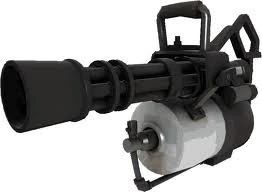 Heavy's great primary weapon that has insanely high fire rate, insanely high ammo count and can mow down enemies easily. It fires four bullets at a time at a rate of 10 times a second. When firing this, Heavy can't jump or switch weapon. The speed is also drastically reduced. It can also conserve ammo by just spinning the barrel without bullets came out of it. Sadly, it can't be reloaded and inaccurate after a lot of shooting.