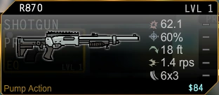 Default shotgun for Tower and West the general. It might be a starting shotgun but it is good for starters that liked instant kills or high damage kills. Although it is a little bit inaccurate, it has a high firepower and nice range. The other backdrop of this weapon is that is has a little bit slow reload and low ammo plus it's pump action. Slow fire rate. 6 ammo.