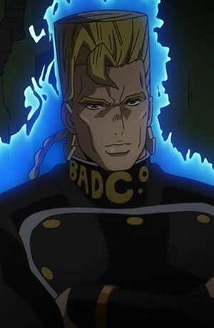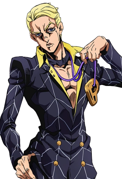 Prosciutto is a member of La Squadra Esecuzioni, the assassination division of the criminal organization Passione. Dissatisfied with their lack of pay compared to their fellow gangsters who ran more profitable aspects of the business, Prosciutto and the rest of La Squadra defected from Passione in order to take control themselves going after the Boss' daughter in an attempt to figure out what his Stand power was. Prosciutto along with Pesci was dispatched to ambush Bucciarati's team on a train. The more confident and competent of the two, Prosciutto took charge but was outwitted by Bucciarati and thrown from the train. However he was able to keep himself alive just long enough to give Pesci a chance to finish the job, dying mere seconds before Pesci himself was defeated.