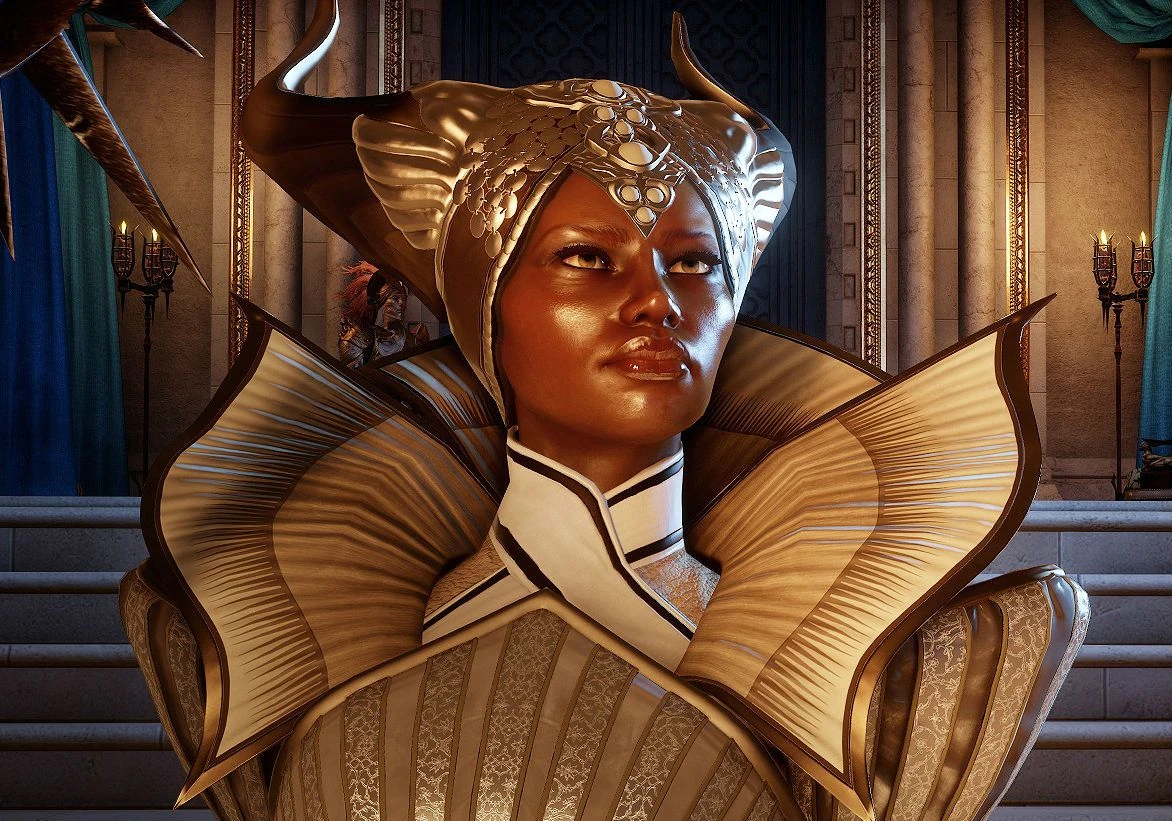 The daughter of two Rivaini merchants, Vivienne was raised within the Ostwick magi circle, where she excelled within the Circle's structure. She quickly became one of Ostwick's most skilled mages, and became the lover of Orlesian noble Duke Bastien de Ghislain, putting herself further in a position of power. While making friends in noble court, she earns the attention of Empress Celene, who she names Court Enchanter. She excels in her position until the mage rebellion, where she formally steps down and leads the Loyalist faction of mages.