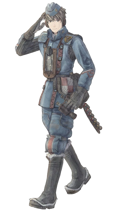 Welkin Gunther was born in the small town of Bruhl, the son of the First Europan War hero and General Belgen Gunther. He enrolled in a university to study natural science, and while there decided to focus his secondary military education on tanks. After the Second Europan War broke out, he left school to help his adopted sister, Isara, pack up and flee the advancing Empire. The Empire attacked as he was doing so; after fighting through the initial wave, he took command of his father's tank, the Edelweiss, and bought time until the town fell after an artillery bombardment.